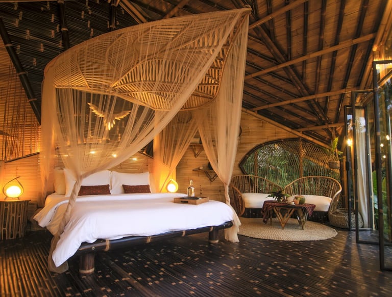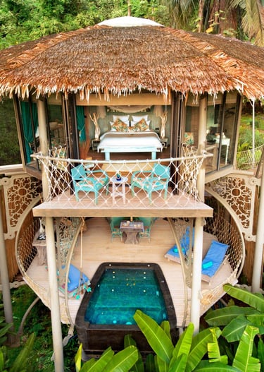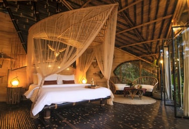 Nuestras cabañas en los árboles, equipadas con lujo y sostenibilidad, brindan un espacio ideal para desconectar mientras cuidamos el medio ambiente.